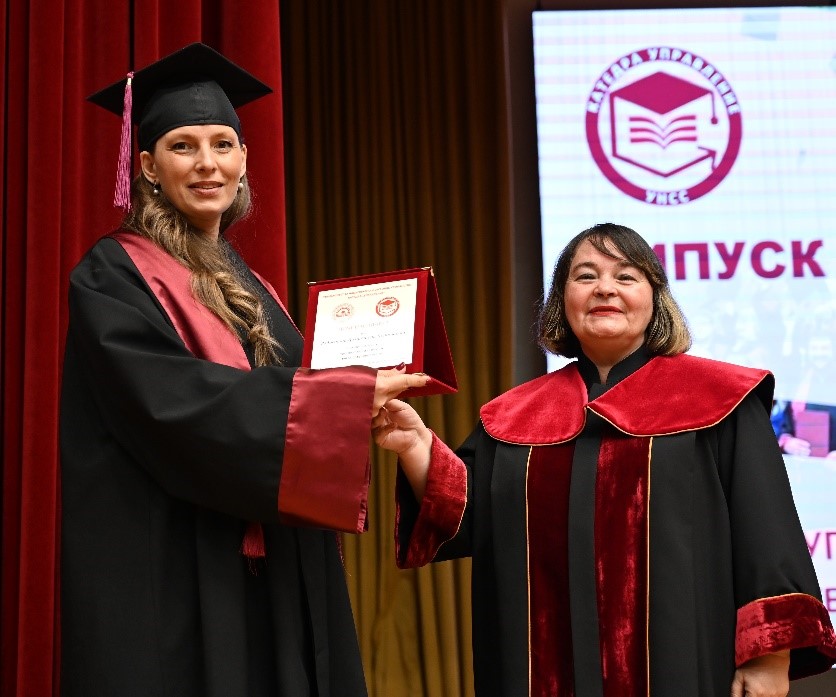 В препълнената с абсолвенти и родители аула „Максима“ се състоя тържественото връчване на дипломите на завършилите катедра „Управление“. Събитието бе уважено от ректора проф. д-р Димитър Димитров, зам.-ректора по институционално и бизнес сътрудничество и студентски политики проф. д-р Цветана Стоянова, която е и ръководител на Катедрата, и проф. д-р Матилда Александрова, преподавател в Катедрата и зам.-ректор по учебната дейност. Гости също така бяха председателят на Студентския съвет при УНСС Калоян Стефанов, доц. д-р Ангел Марчев-старши, дългогодишен преподавател в Катедрата и Калин Димчев, Country Manager на регион „Адриатикс“, включващ 9 пазара (Албания, Босна и Херцеговина, България, Косово, Северна Македония, Словения, Сърбия, Хърватия и Черна гора) и Country Manager за България и възпитаник на катедрата.