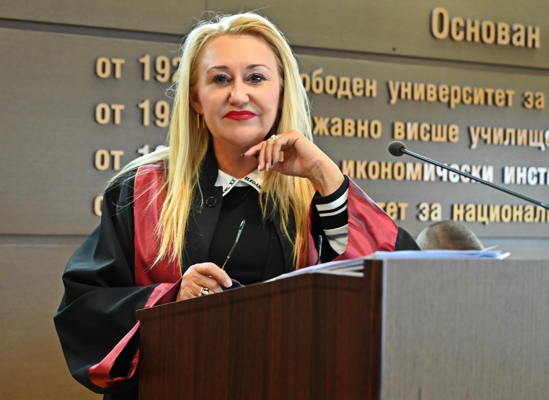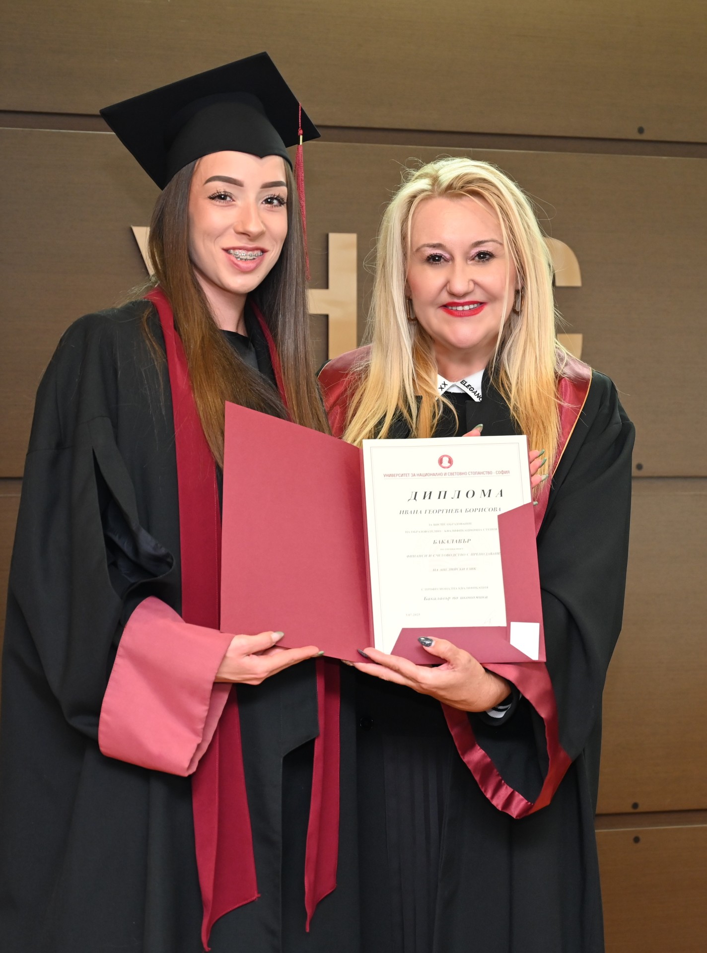 Пожелавайки им на добър час, тя още веднъж изтъкна: „Вие, скъпи дипломанти, имахте честта да се обучавате от най-добрите. Вие сте гордостта на УНСС и ФСФ. Вие сте бъдещия професионален елит на страната ни. Вие сте нашите посланици пред обществото. Пожелавам ви да мислите и действате и да успявате. Носете в сърцето си УНСС и ФСФ!“.