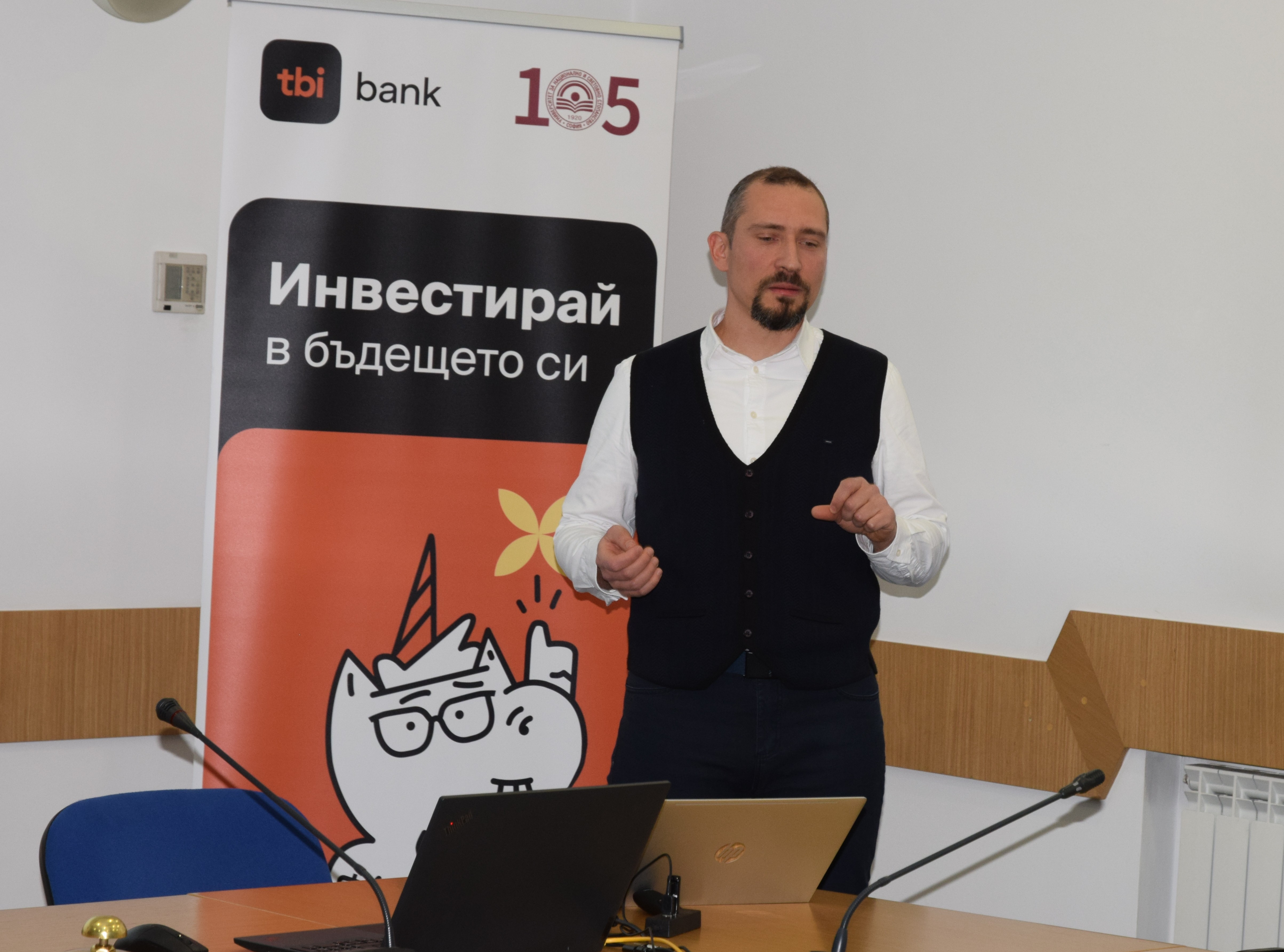 На 06.11.2025 г. в Малка конферентна зала на откриването присъстваха проф. д-р Цветана Стоянова, зам.-ректор по институционално и бизнес сътрудничество и студентски политики, Валентин Гълъбов, изпълнителен директор и член на Управителния съвет на tbi bank и доц. д.н. Александър Найденов, ръководител на катедра „Статистика и иконометрия“.